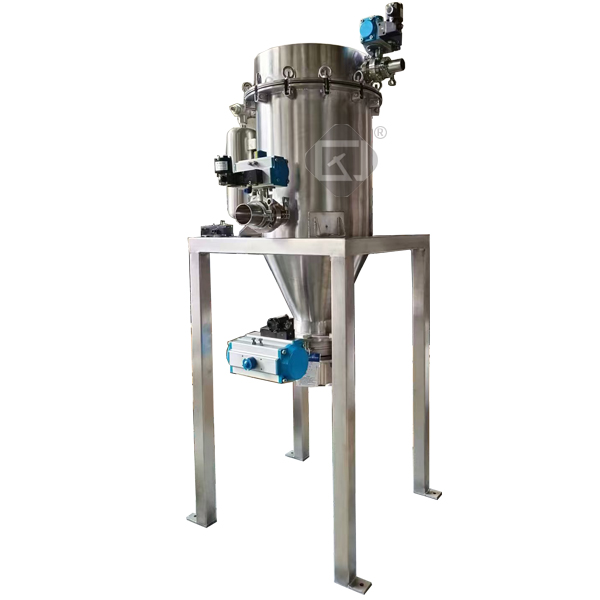 c) -料倉充滿物料時,真空泵自動關閉,輸送設備內的壓力達到平衡。放料閥開啟,物料通過出料口流出,并直接落入儲料容器。